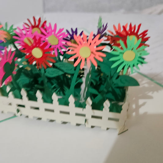 Beautiful 3D Pop Up Card Daisy Garden with White Picket Fence