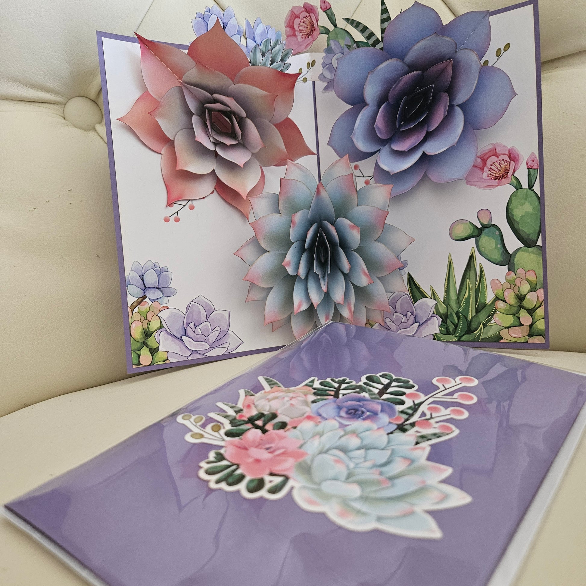 This 3D pop up card is cut with laser and folded, put together by hand. They come flat and just open up to become 3D, you don't have to do anything, just open the card.